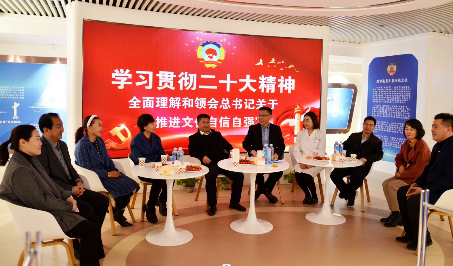 大家共同學習貫徹二十大精神,全面理解和領會習近平總書記“推進文化自信自強”,并由民盟界政協委員周本剛講述了《談“關于健全青少年理想信念教育機制的提案”》。希望民盟界政協委員,切實領悟“委員讀書”的重要性、有益性,不斷加強委員議政基本素養(yǎng),爭當政協委員讀書活動的示范、先鋒;要落實到委員履職的實際上,結合主界別特色開展好調研,深入思考,多出高質量提案。大家紛紛表示,要多舉辦此類學習機會,努力營造“好書蘊書香、時時聞書香、人人有書香”的委員之家氛圍。